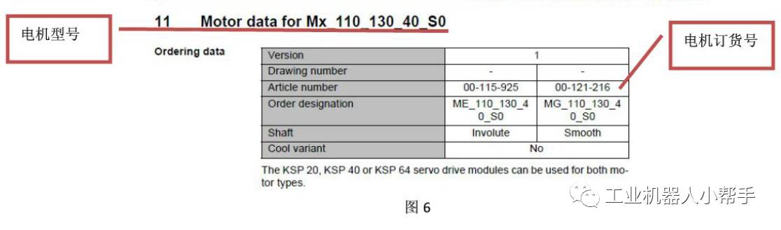 例如下圖中的電機的訂貨號后六位是121216,參考KUKA文件可查出電機型號為MX_110_130_40_S0