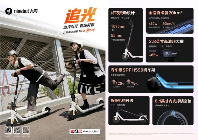 九號電動滑板車:F2 系列高能亮相,E2 梔子白新色入列,C2 Pro童趣滿滿
